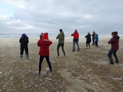 We oefenen in mindful-contact met de elementen: bos, duin, strand en zee. Niet alleen zijn we ín de natuur – we zijn natuur.